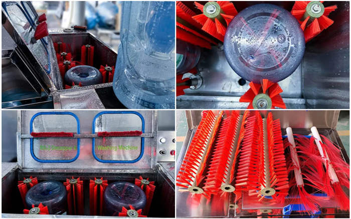 Поддержание чистоты 5-галлонных бутылок для воды — ключевой этап в производстве бутилированной воды. Щетка для мытья бутылок объемом 5 галлонов Этот комплект устанавливается на автоматические и полуавтоматические машины для мойки бутылок, помогая производителям мыть большие бутылки с водой.