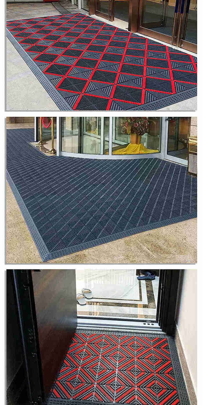 Дверной коврик со щетиной 3 в 1 Это полностью пластиковое изделие, которое отлично подходит для защиты дома от грязи и мусора. Изделие состоит из трёх частей: нейлоновая щетина, антивозрастной резины ЭВА и секция скребка, которые предназначены для соскребания грязи и песка с подошв обуви и нескользящийБлагодаря формованной форме щетинки можно располагать в различных узорах, а их размеры можно комбинировать в зависимости от необходимого вам типа коврика.