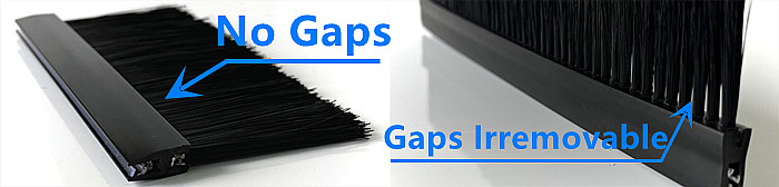 Напротив, жесткая накладная профильная щетка Используется щетка с металлическим каналом. Все щетинки плотно сжаты и зафиксированы внутри U-образного металлического канала, не оставляя никаких зазоров. Такая конструкция позволяет щетке обеспечивать почти 100% герметичность, что делает ее идеальной для центров обработки данных и серверных шкафов, где контроль воздушного потока имеет решающее значение.